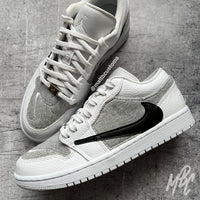 Introducing our exclusive White Jordan 1 Low custom sneakers, where luxury meets unparalleled craftsmanship. Immerse yourself in a world of sophistication with these limited edition kicks, meticulously crafted to elevate your style game.