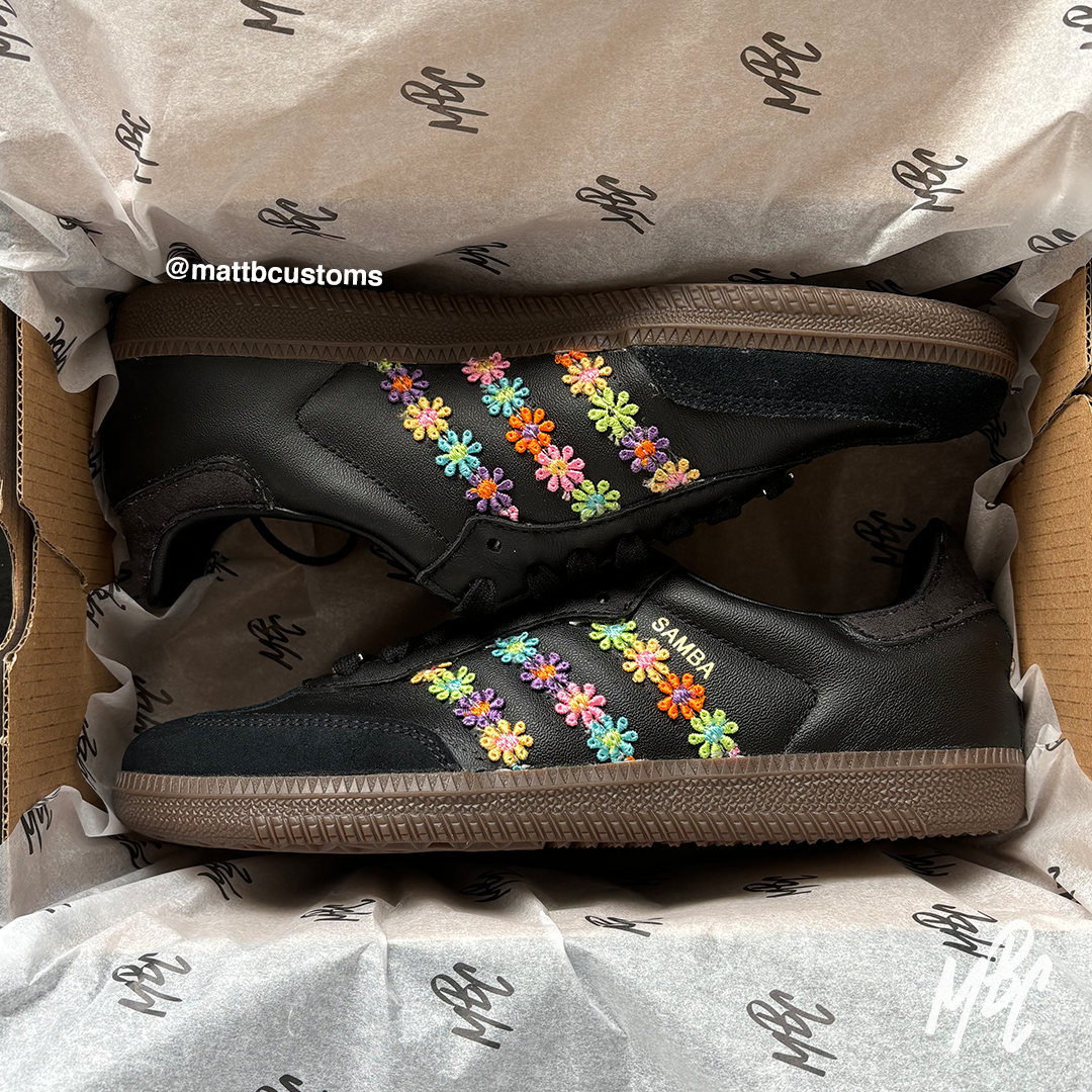 Flower Power - Adidas Samba Black | UK 6