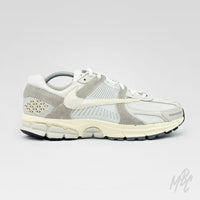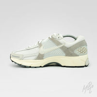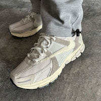 Vomero 5 with sandy suede cut and glued featuring a reverse swoosh on the outside of each shoe.