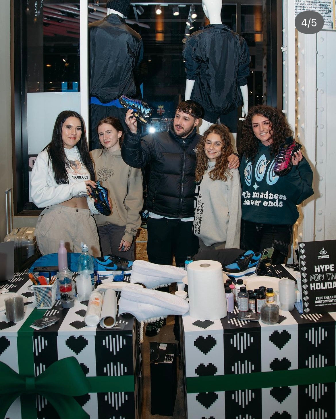 The team created personalised Air Force 1 custom trainers for 59 guests at a JD event in London, including various artists, influencers and celebrities.