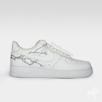 White or Black Nike Air Force 1 custom with 3M reflective lightning bolts across outside of both shoes.